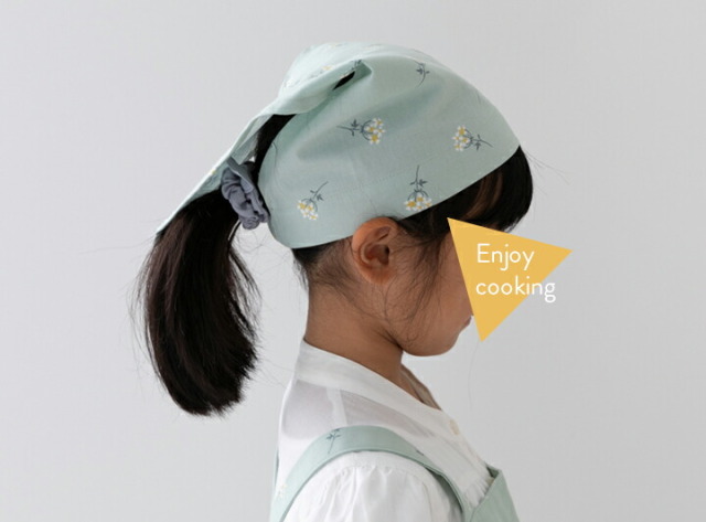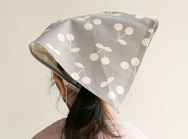 三角巾はかぶるだけで簡単に着脱できるよう、後ろがゴムバンドになっています。