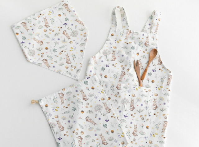 手づくりのぬくもりも感じられるエプロンセットをお届けします。