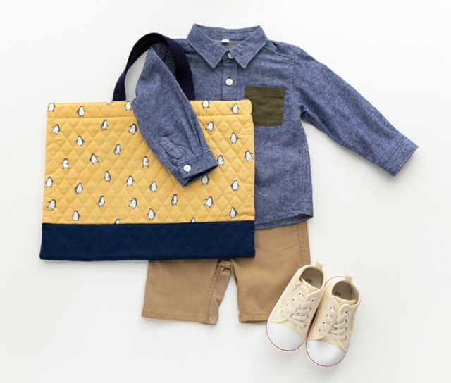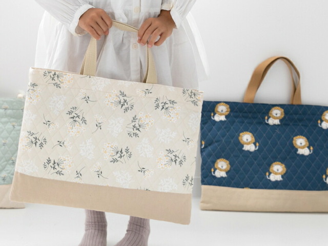 入園入学グッズのために特注したオックス生地をキルティング加工。