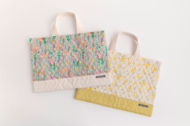 当店の姉妹店でもある手芸ショップ「デコレクションズ」の人気オリジナル生地を使用したレッスンバッグ。