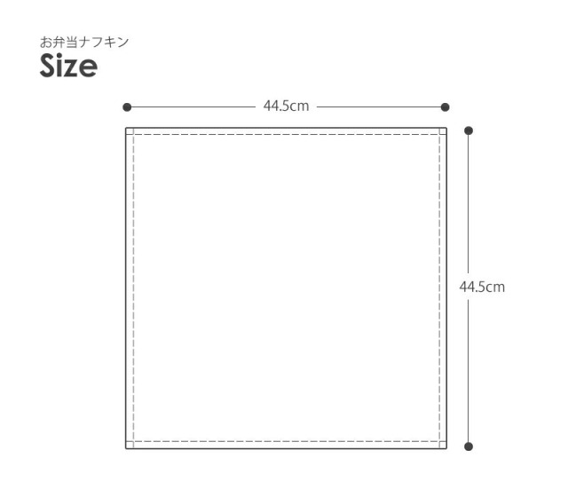 およそ縦44.5×横44.5cmの大判正方形サイズで、お弁当を包むのに十分な大きさです。