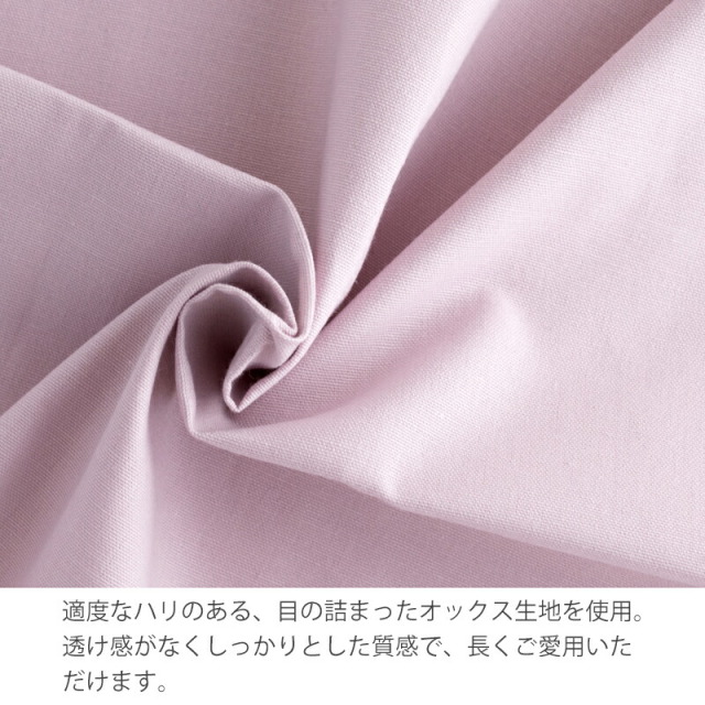 コットン生地より厚みのある、丈夫なオックス生地のため、汚れや洗濯に強く、しっかりとした作りが特徴です。