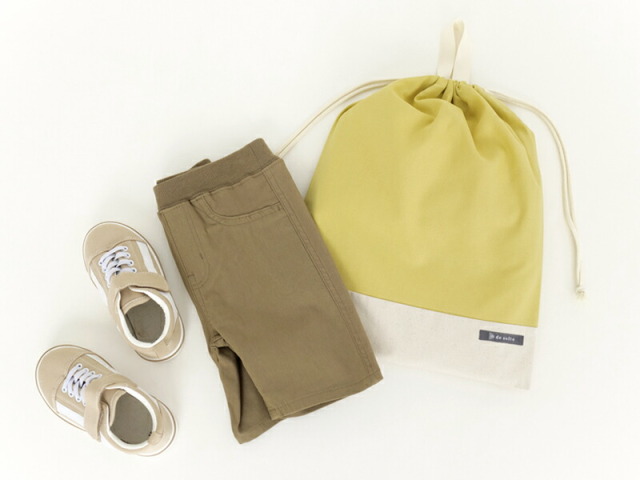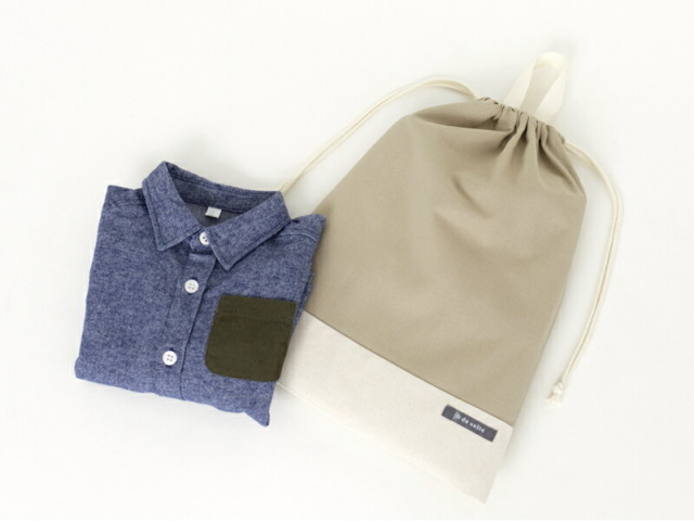 当店の姉妹店でもある手芸ショップ「デコレクションズ」の無地オックス生地を使用した巾着袋。