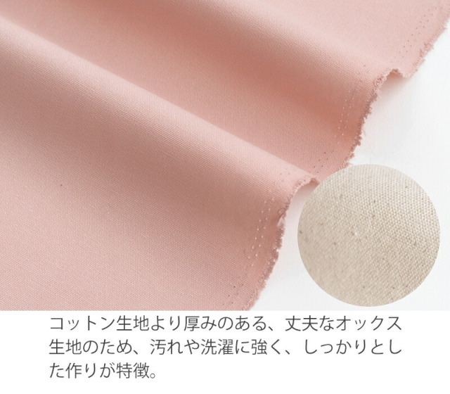 コットン生地より厚みのある、丈夫なオックス生地のため、汚れや洗濯に強く、しっかりとした作りが特徴です。