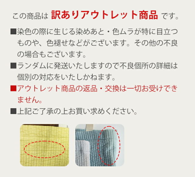・サイズには2cm程度の誤差が生じることがございます。 ・1点ずつ手づくりで製造しているため、サイズ誤差が生じることをご了承ください。 ・同一製品であっても、色やサイズに若干の違いがある場合がございます。 ・一部の生地にみられる黒の点々は汚れや不良ではありません。コットンの殻のかけらで、自然そのままの布地ならではの風合いです。 ・一部の生地にみられる糸の混入や繊維のスジは不良ではありません。生地の特性によるもので避けられないものですので、あらかじめご了承の上お買い求め下さい。 |