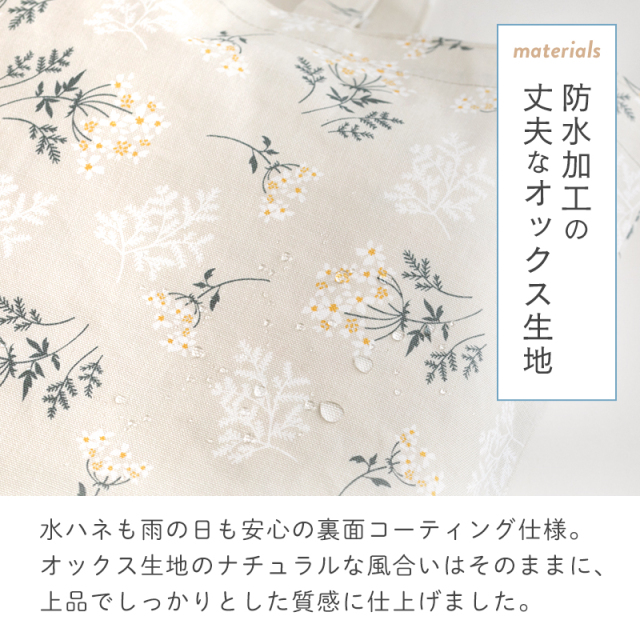 表布:オックス生地(裏面コーティング加工) 表 コットン100%(オックス生地) スナップボタン:ポリアセタール |
