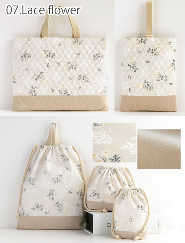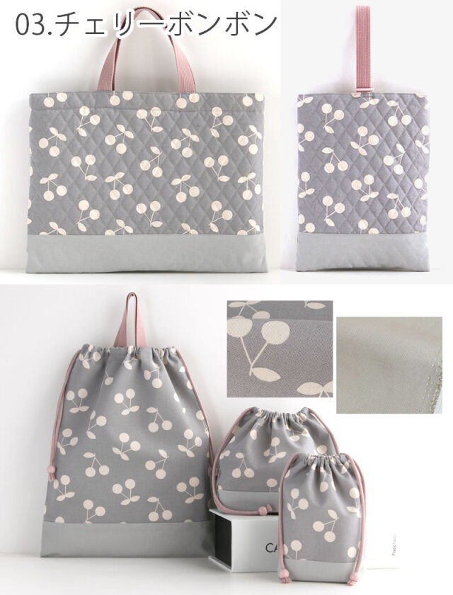 入園入学グッズのために特注したオックス生地とキルティング生地を使用。