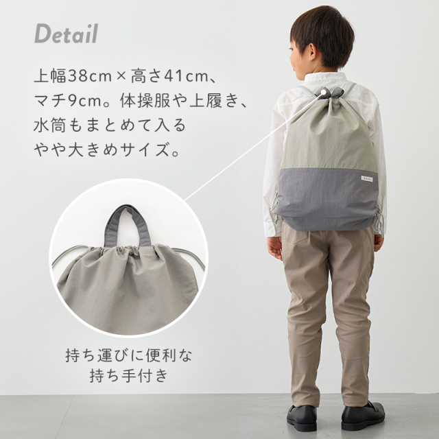 体操服や上履き、水筒、絵の具セットなど、荷物が多い日でも安心のゆったり大きめサイズ。