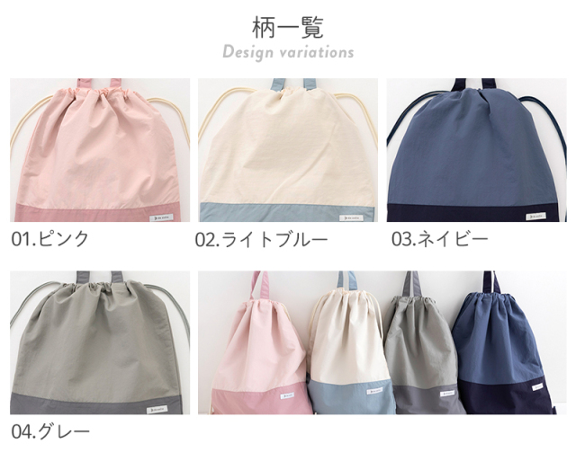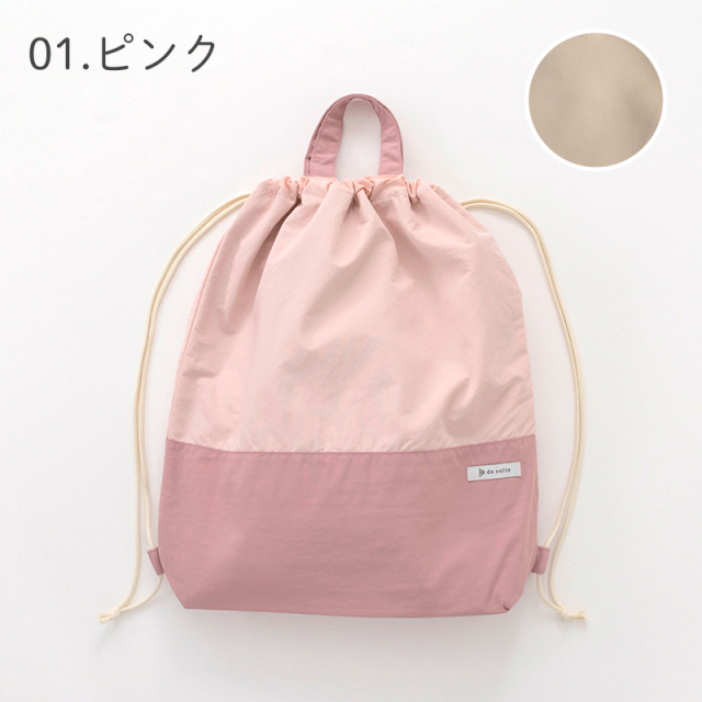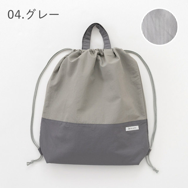 北欧ライクなくすみカラーがかわいい、撥水ナイロン製の大きめナップサック。
