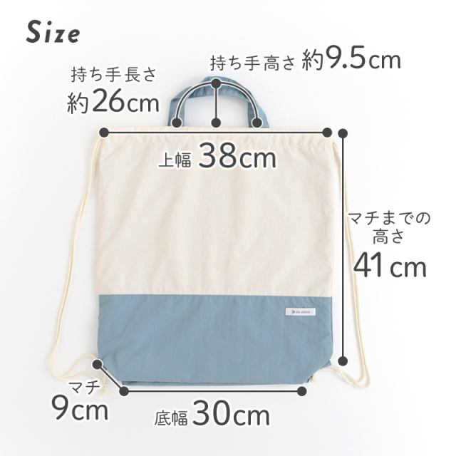 上幅:約38cm(底幅:30cm)×高さ:約41cm×マチ:9cm 持ち手の長さ:約26cm 持ち手の高さ:約9.5cm |