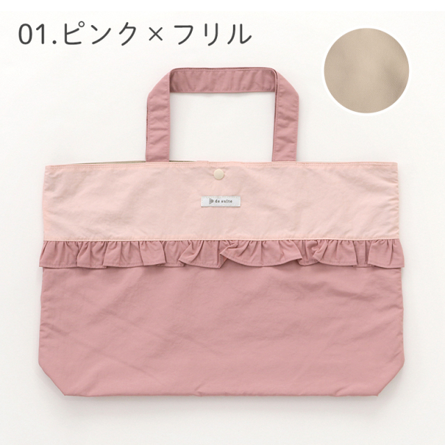 やさしい雰囲気と実用性を兼ね備えた「de suite(デスイート)」のマチ付きレッスンバッグ。