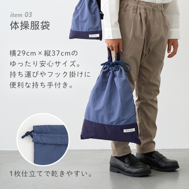 北欧ライクなくすみカラーとシンプルなデザインが魅力の「de suite(デスイート)」入園入学4点セットです。