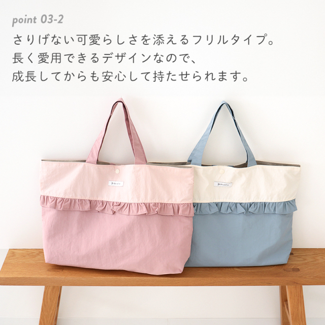 フリル付きの可愛いタイプと、シンプルで長く使えるベーシックタイプの2デザイン展開。