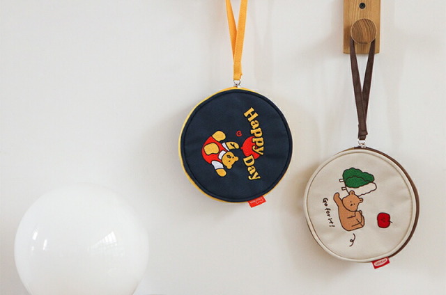ゆる~くかわいいキャラクターと丸い形がキュートなポーチです。