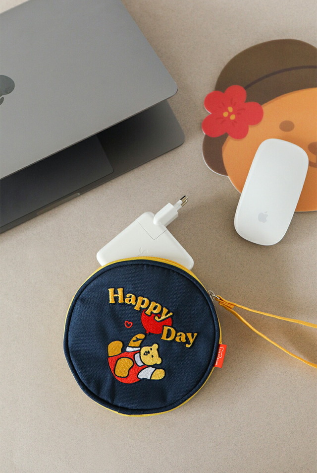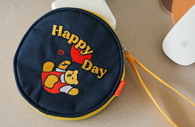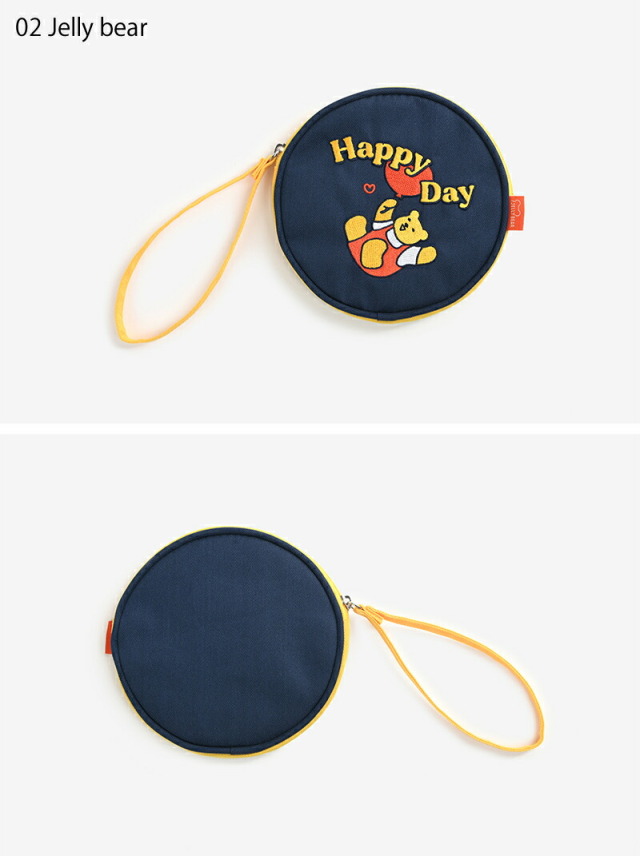デイリーライク Dailylike JELLY BEAR Happy Day ポーチ 丸型ポーチ サークルポーチ コインケース 化粧ポーチ 小銭入れ 小物入れ マルチポーチ 韓国雑貨 クマ ゼリーベア かわいい おしゃれ 学生 通学 キーケース キッズ 韓国