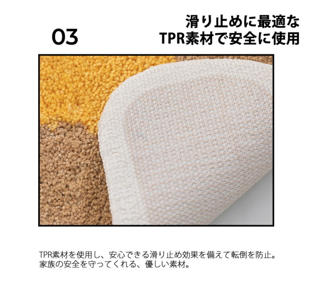 裏地には滑り止め効果のTPR素材を使用しているため、転倒等から家族の安全を守ります。