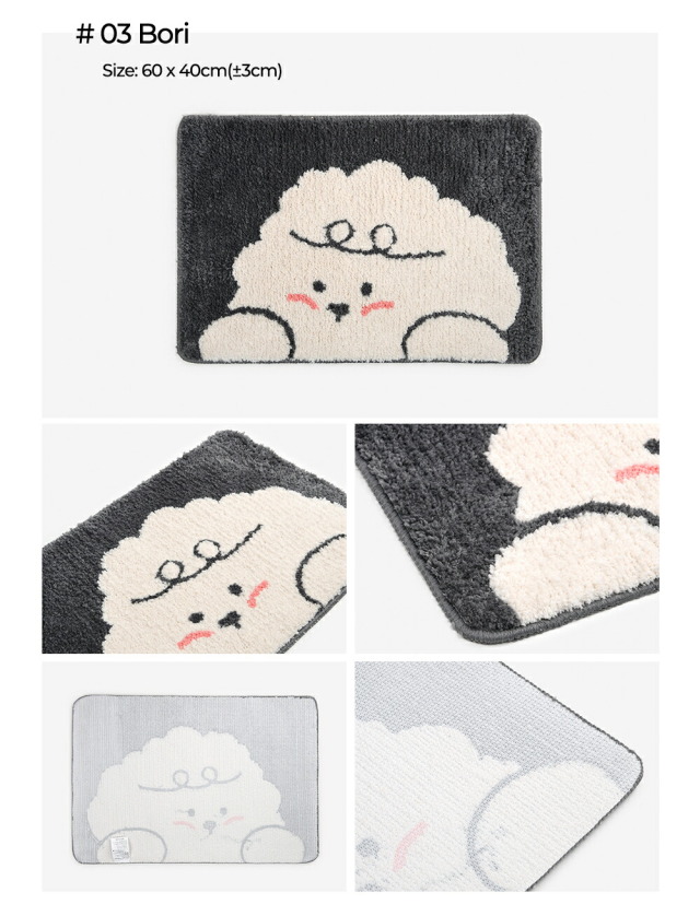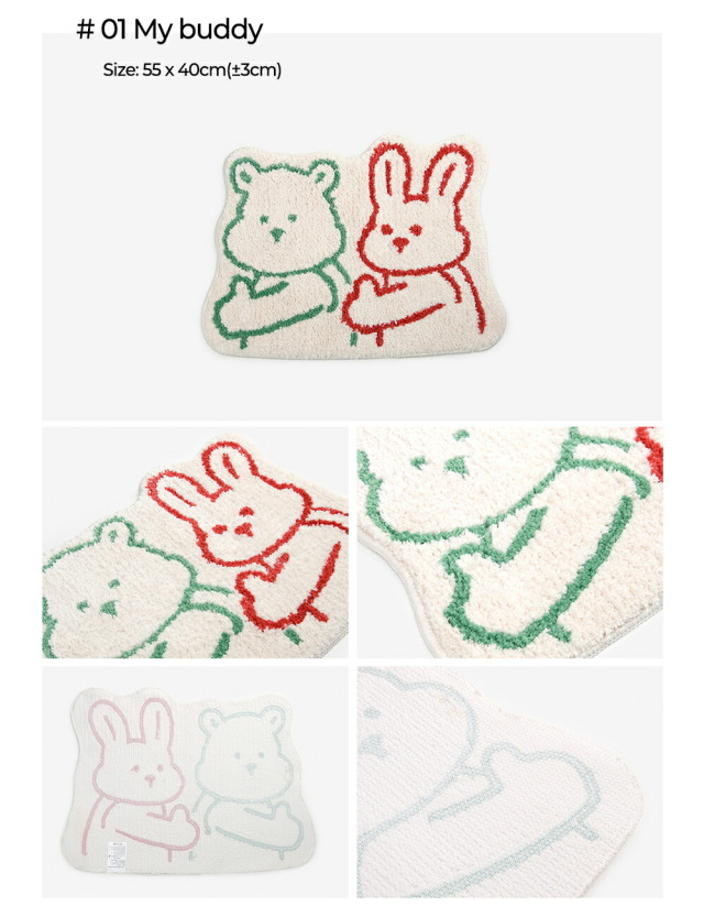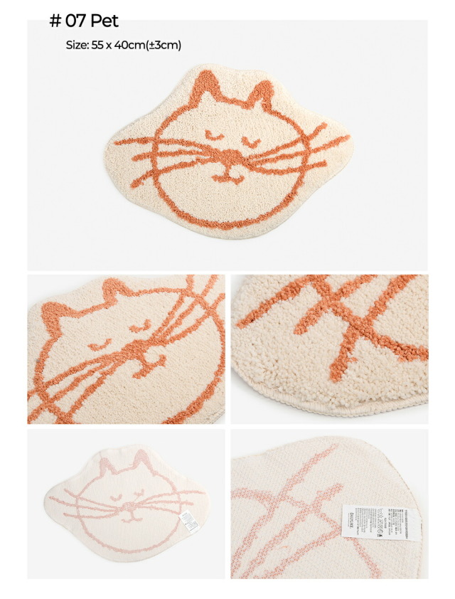 01 My buddy:約55cm x 40cm(±3cm) 02 Vintage flower:約60cm x 40cm(±3cm) 03 Bori:約60cm x 40cm(±3cm) 04 Dong-gu:約60cm x 40cm(±3cm) 05 Bread cat:約60cm x 40cm(±3cm) 06 Egg flower:約55cm x 40cm(±3cm) 07 Pet:約55cm x 40cm(±3cm) Kitty:約55.5cm x 48cm(±3cm) Puppy:約58cm x 42.5cm(±3cm) |
